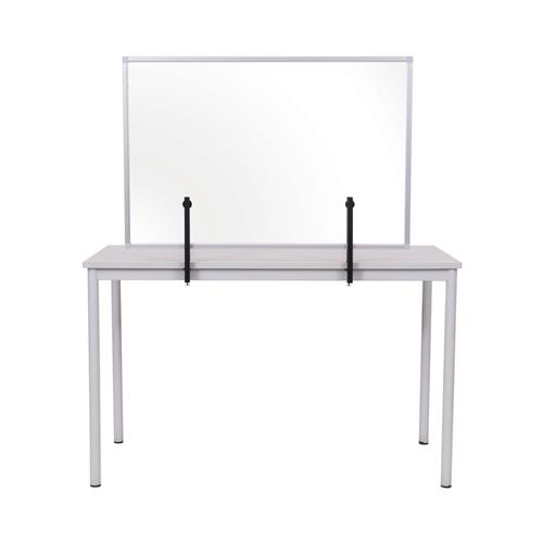 With these transparent aluminium frame tabletop dividers, people can stay protected, while maintaining the visibility. Ideal product for, office desks, canteens and restaurants, and public (governmental) services. Product is held in place by clamps.
