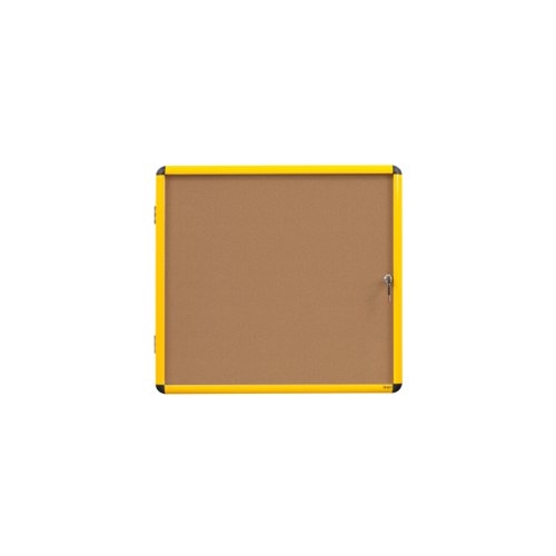 Bi-Office Ultrabrite Display Case; Cork Surface; Lockable Acrylic Door; Yellow Aluminium Frame; 720x981mm - 9x A4