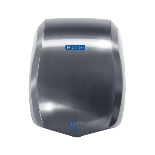 The Biodrier 3D Smart Dry is an economical option and one of the best hand dryers available when it comes to hand dryer hygiene. This hand dryer features everything from enhanced hand dryer hygiene to incredible energy efficiency. Featuring HEPA filters which work to trap 99.9% of airborne bacteria and viruses. Adjustable to ambient air temperature automatically, the 3D Smart Dry hand dryer generates warm air at a comfortable temperature in the colder months and reduces waste power in the summer by heating air unnecessarily. This intelligent heating hand dryer is ideal for minimising expenditure and excess energy use while still remaining efficient at a comfortable temperature. Using the ambient temperature of the room, the 3D Smart Dry produces enough heat to maintain a controlled, comfortable temperature. This hand dryer works by producing jets of air from three different angles which surround your hands and ensure they are dried evenly and quickly. Due to the high air speed, hands are dried within 10 seconds. If you are looking for a tough, hardworking hand dryer that only requires minimal maintenance, the 3D Smart Dry is ideal. This hand dryer is also vandal proof with its case constructed from a durable, heavy duty die cast aluminium making it a great choice for use in public and busy washrooms. This, combined with a high-speed brushless motor, ensures the Biodrier 3D Smart Dry has a long lifespan.