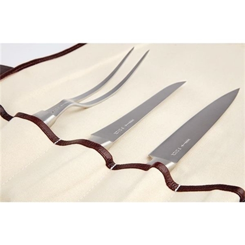 Protect your prep tools and utensils while on the go with this one buckle leather knife bag from Boldric. Designed with chefs and culinary students in mind, the bag has a simple roll-up design and boasts eight pockets, accommodating knives up to 15.5" (40cm) in size. It is made from real water buffalo leather and features a polished brass buckle fastening and thick canvas interior flap. When unrolled, this Boldric knife bag measures 21.5" x 19" (55cm x 48cm), providing ample space for your equipment.