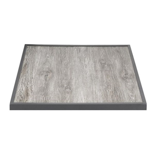 Bolero Wood Grain Effect Outdoor Tempered Glass Table Top Grey Trim 700mm