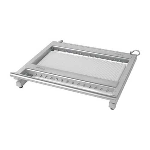 Designed to cut up to 56 slices at a thickness of 0.5 cm at a time, all it takes is one movement and the cheese is ready to go. Aside from mozzarella, the slicer can also be used to cut goat cheese and other similar soft cheeses without rinds. You can even use it to cut tofu and marzipan.