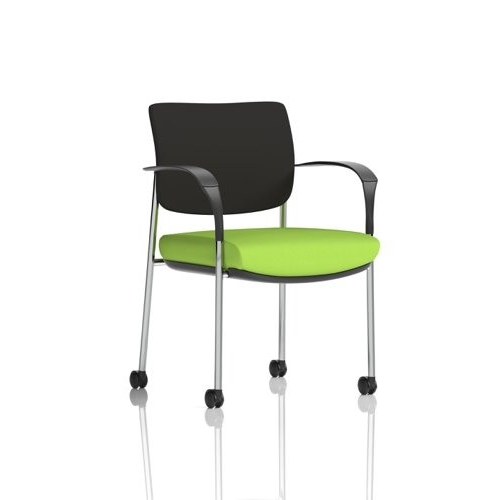 Brunswick Deluxe With Arms Chrome Frame With Castors Black Fabric Back Bespoke Colour Seat Myrrh Green