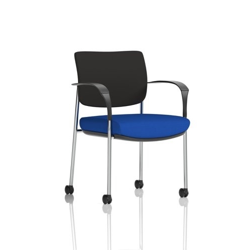 Brunswick Deluxe With Arms Chrome Frame With Castors Black Fabric Back Bespoke Colour Seat Stevia Blue
