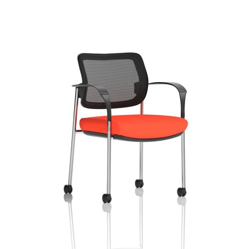 Brunswick Deluxe With Arms Chrome Frame With Castors Mesh Back Bespoke Colour Seat Tabasco Orange