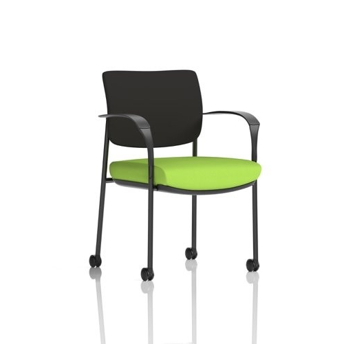 Brunswick Deluxe With Arms Black Frame With Castors Black Fabric Back Bespoke Colour Seat Myrrh Green