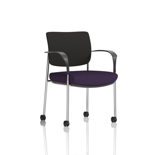 Brunswick Deluxe With Arms Chrome Frame With Castors Black Fabric Back Bespoke Colour Seat Tansy Purple