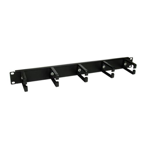 The cable management bar is a 19" 1U bar for rack mount use. Metal bar with removable plastic holders.