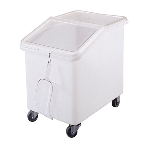 This large 140 litre capacity ingredient bin from Cambro offers a practical, hygienic and mobile storage solution for all your bulk, dry ingredients. The clear lid ensures easy identification of contents, and an integrated S-shaped hook provides the perfect space for hanging scoops or portioners. With heavy duty casters, the ingredient bin is also sturdy and reliable, allowing you to store and transport various ingredients with ease. Naturally, the bin is guaranteed food safe thanks to its construction from FDA approved materials, to promote food safety and hygiene.