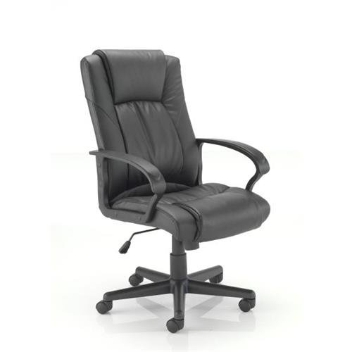 A high back leather-look executive armchair to impress without the hefty price tag, with a lock tilt mechanism and fixed arms.
