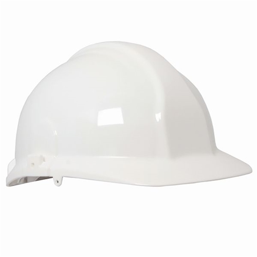 Centurion 1100 full peak safety ratchet helmet. HDPE general purpose safety helmet fitted with a 6-point plastic cradle. Gives maximum comfort and balance for prolonged wear. Standard EN 397:2012+A1:2012.