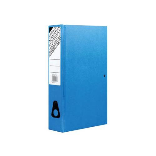 These Centurion foolscap box files feature a lock spring mechanism on the lid making them ideal for storing mixed sizes of documents neatly and securely. Suitable for papers up to foolscap size, these box files have a spine label for identification of contents and are supplied in blue.