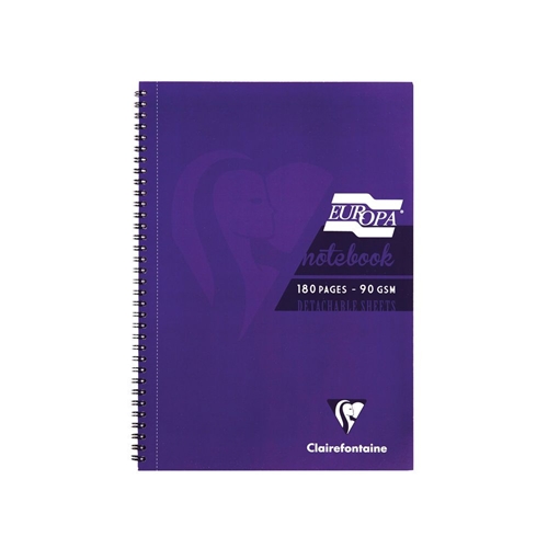Clairefontaine Europa A4 Wirebound Card Cover Notebook Ruled 180 Pages Purple (Pack 5) - 5803Z
