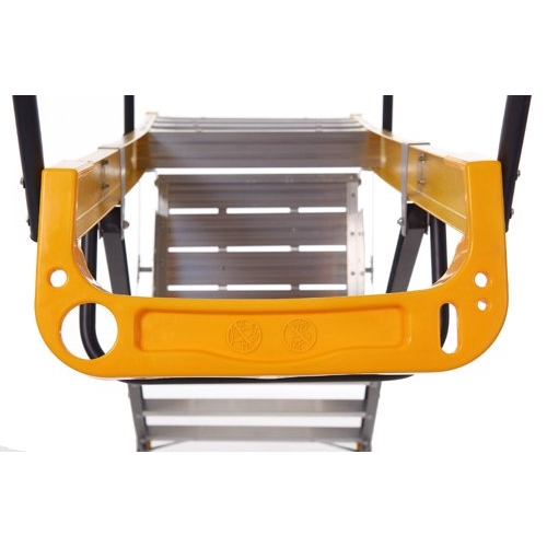 - Podium steps with high safety rail, which is 950 mm above the platform, provides added safety when working at high levels