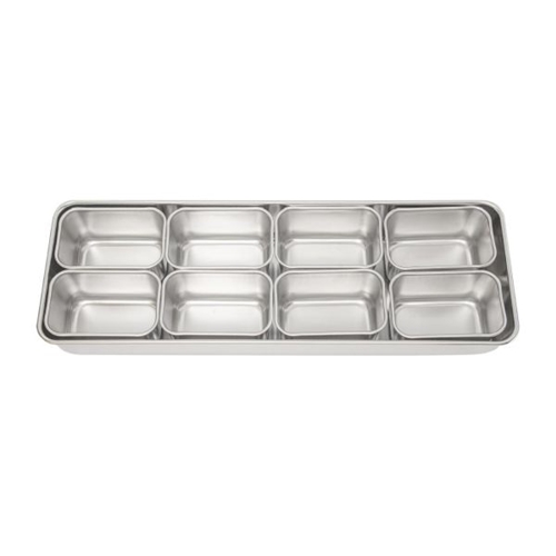These pans are strong and resistant to any cooking environment because they are made of immensely strong Japanese premium stainless steel. The pans can be coupled with full-size or half-size inserts for a flexible mise en place arrangement and are dishwasher safe. They are also detachable for simple cleaning. Includes: 6 small inserts Size: 145x435x60