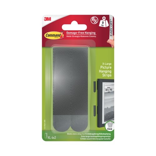 For use at home or in the office, these Picture Hanging Strips are easy to apply, hold on strongly and can be removed easily, without leaving blemishes on the wall. Without the need for nails or tools of any kind, these innovative picture hanging strips are suitable for heavy picture frames, with 40% more adhesive holding power compared to Command large picture hanging strips. This pack contains 8 (4 pairs of XL) adhesive strips in black.