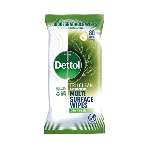 Dettol Tru Clean Antibacterial Multi Surface Wipes, Crisp Pear, Pack of 80