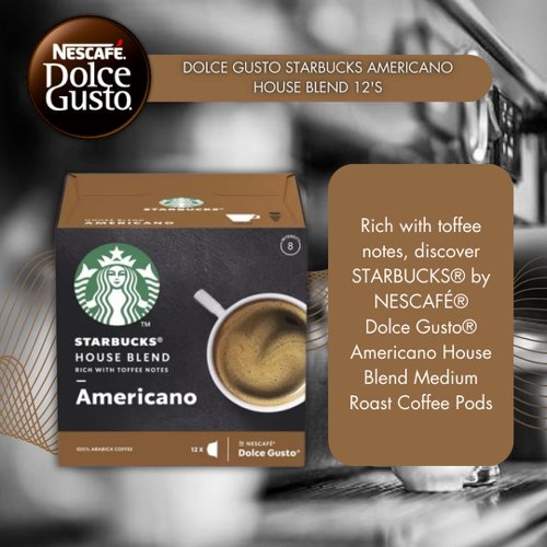 Rich with toffee notes, discover STARBUCKS® by NESCAFE® Dolce Gusto® Americano House Blend Medium Roast Coffee Pods