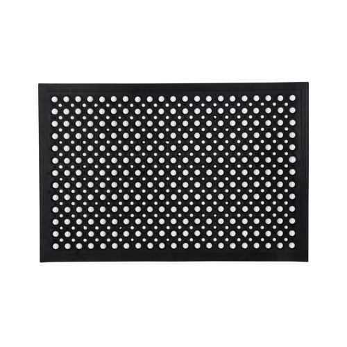 Durable and hard wearing 100% recycled natural rubber construction. Extremely versatile for use anywhere that you need anti-fatigue and dirt / moisture removal capabilities. The honeycomb style hole structure enables excellent scraping of foot wear to remove dirt, debris and moisture. The open-top design traps dirt and moisture, allowing it to fall to the floor below. Also highly effective as an outdoor entrance mat. Natural rubber structure provides the perfect combination of durability, slip resistance and comfort.