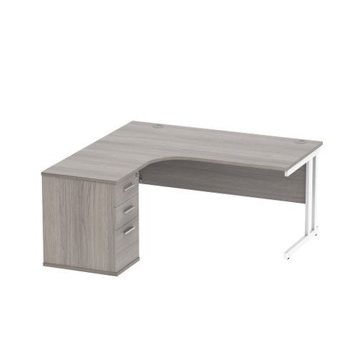 Double Upright Left Hand Radial Desk + Desk High Pedestal 1600X1200 Alaskan Grey Oak/White