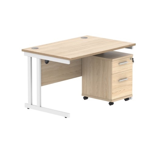 Double Upright Rectangular Desk + 2 Drawer Mobile Under Desk Pedestal 1200X800 Canadian Oak/White
