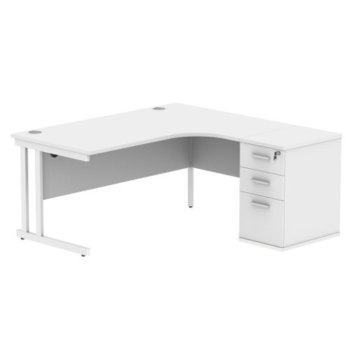Double Upright Right Hand Radial Desk + Desk High Pedestal 1600X1200 Arctic White/White