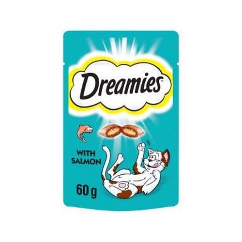 Cats go mad for the irresistible taste of Dreamies cat treats. Deliciously crunchy on the outside, soft on the inside; cats simply can't resist the great taste of Dreamies treats for cats. So go on, give the bag a shake and watch your cat come running.Irresistible dual textured cat treats with Salmon that contain vitamins and minerals, are less than 2kcal per treat and have no artificial flavours.