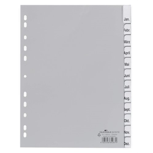 Durable polypropylene file dividers with 12 removable tabs for separating your documents numerically. The German designed index dividers use universal punching for maximum compatibility