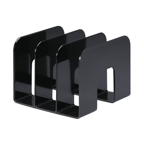 This Durable Trend catalogue stand has a black gloss finish and features three compartment subdivisions of 65mm each. Offering space for a variety of magazines, leaflets and brochures, the stand keeps counters, desks and tables tidy. The environmentally friendly stand is 100% recyclable, made from durable moulded plastic.