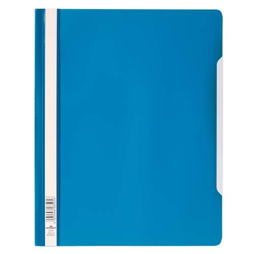 Durables original Clear View folder made from copy safe anti-glare polypropylene. The folder features a transparent front cover and full length label holder for organisation. The rear cover is recessed for easier page turning and includes a 8cm filing bar for punched paper.