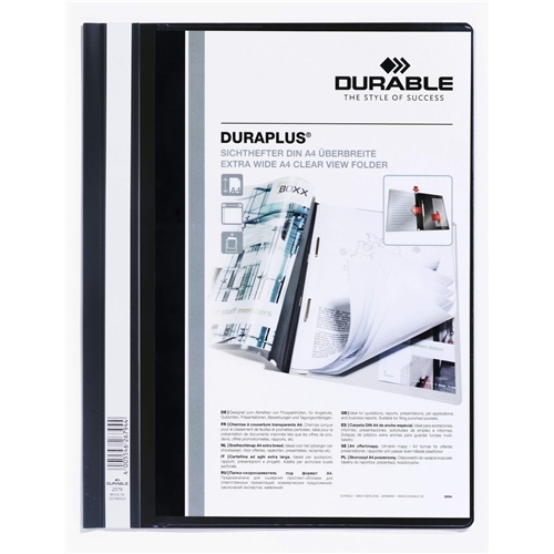 Versatile and inexpensive DURAPLUS® is a great alternative to printed folders. Featuring a clear view front pocket and full length labelling strip for easy organisation. The folder contains a clear inside pocket for unpunched documents and can be filed in lever arch files and ring binders with a filing strip (product # 2996).