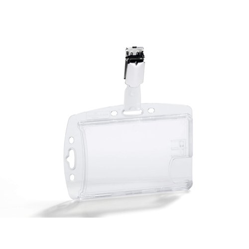 Durable Enclosed DUO 2 Card Clip Security Pass ID Badge Holder - 25 Pack - Clear