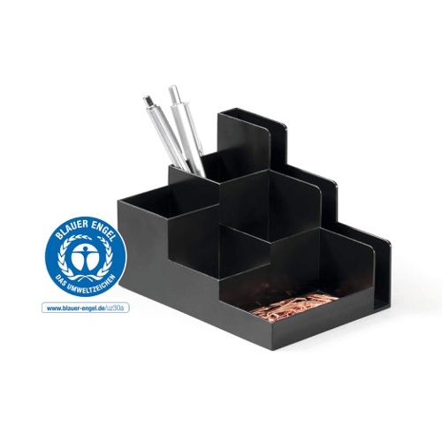 Our OPTIMO range features timeless minimalist design with a smooth charcoal finish. The 6 variable size compartments are great for storing pens, scissors, paper clips, makeup brushes, and much more.