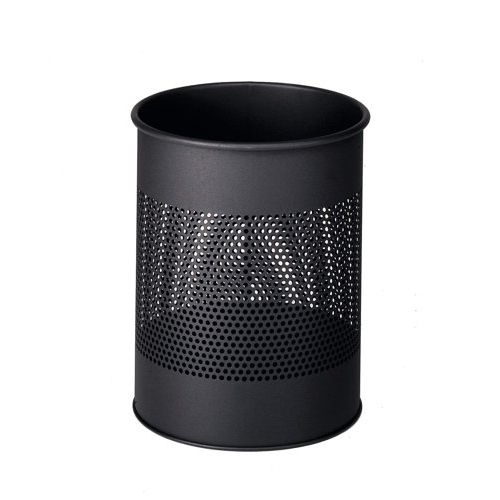 Durable Round Metal Perforated Waste Bin - Scratch Resistant Steel - 15L Charcoal