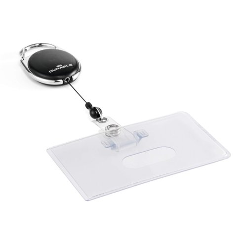 Durable STYLE Security Pass ID Card Holder with Carabiner Badge Reel - Black