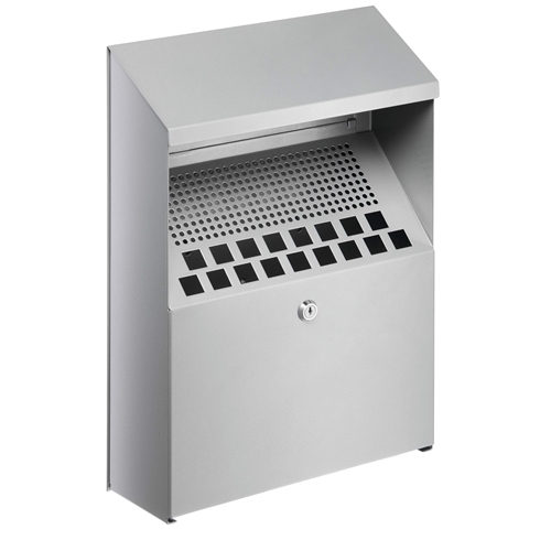 Introducing our steel wall-mounted ashtray the perfect solution for safe and efficient cigarette butt disposal in sheltered outdoor areas. Crafted with durability and convenience in mind this ashtray features a strong epoxy polyester coating and a lockable design for added security.