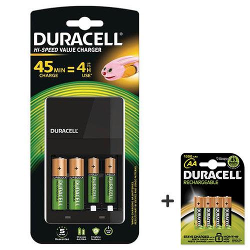 Duracell 45 Minute Battery Charger Hi Speed for NiMH AA/AAA LED Charge Status Indicator Ref 81528873 - FREE Pack of Duracell AA Batteries (Pack of 4)