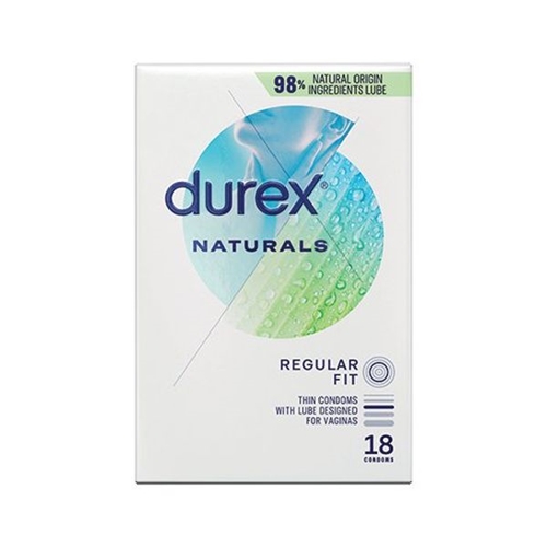 Durex Naturals are thin condoms with lube designed for her. Our thin, Naturals condom is coated with a water based lubricant made from 98% natural origin ingredients, helping provide a smooth, intimate experience with your partner. Free from artificial colourants and flavours. Transparent natural rubber latex condoms with a nominal width of 56mm. Naturals condoms are as thin as our Thin Feel Classic Condom (55um). Durex quality: 100% electronically tested with 5 more quality tests carried out on every batch. Enjoy all the reliability of Durex that comes as standard, without any compromise to your satisfaction. Supplied in a pack of 18.