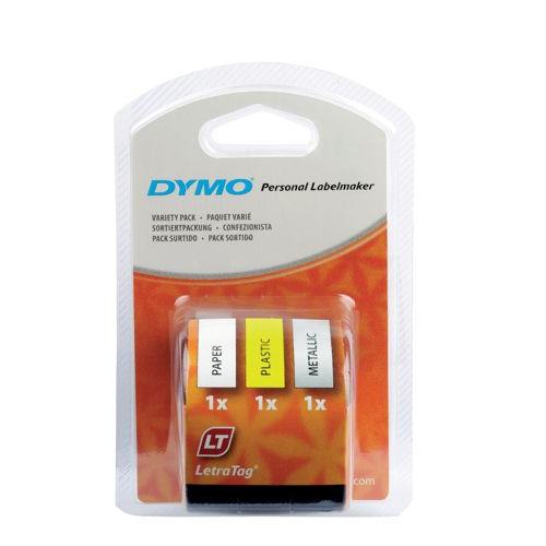 Dymo LetraTag Tape Plastic 12mmx4m Assorted Rolls Ref S071640 [Pack 3]