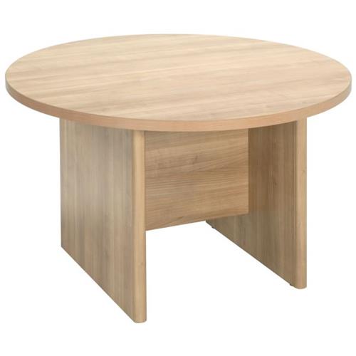 A sturdy circular conference table with solid 50mm thick leg panels. Complementary storage is also available.