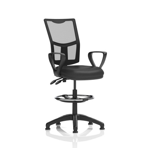 Eclipse Plus II Lever Task Operator Chair Mesh Back With High Rise Draughtsman Kit With Loop Arms Black Bonded Leather