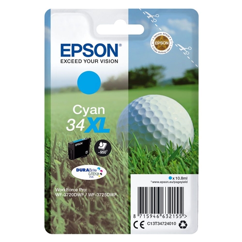 Epson 34XL Golf Ball DURABrite Ultra Ink Cartridge High Yield Cyan C13T34724010