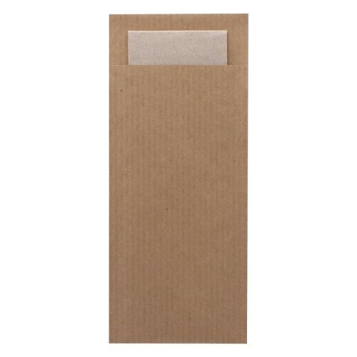 Europochette Classic Size Kraft Brown Cutlery Pouch with Kraft 2ply Napkin (500 pack)
