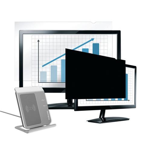 The Fellowes PrivaScreen Blackout Privacy Filter helps your business conform with data protection laws and prevents snoopers spying on what you're looking at on your computer. It presents a solid black reflection for viewers at the side, while remaining crystal clear for users viewing from directly in front. It also helps prevent damage to the screen, and the matte reverse side can reduce glare as well. Simple but sturdy tabs make it easy to attach and remove when needed.