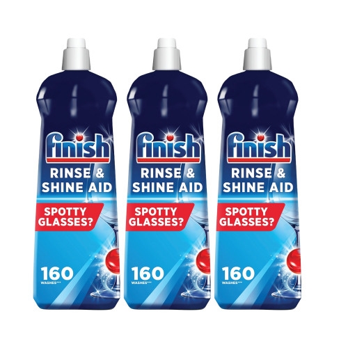 Finish Rinse Aid is a quick drying formula actively dries dishes and glasses for a brilliant shine. Offering film protection to prevent stains, it fights water spots and speeds up drying time by dispersing water droplets, leaving dishes streak-free and ready to use again.