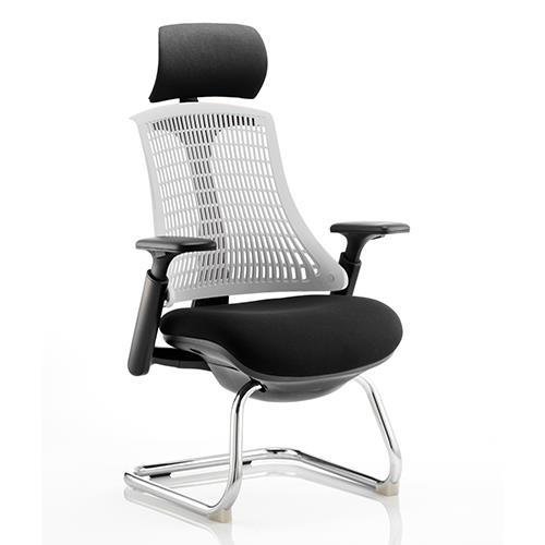 Flex Visitor Cantilever Chair Black Frame Black Fabric Seat With Moonstone White Back With Arms With Headrest Ref KC0115