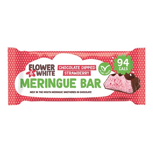 Flower & White Vegan Chocolate Dipped Strawberry Meringue Bar [Pack of 12]