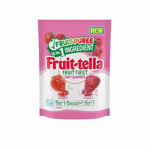 Delicious Fruit-tella Fruit First soft gummies in strawberry and raspberry flavours. Soft jelly in texture and made with 35% fruit puree. Made for sharing. Natural colourings and flavours. High in fibres. Dairy, gluten and nut free. 140g per packet. 12 packs supplied.