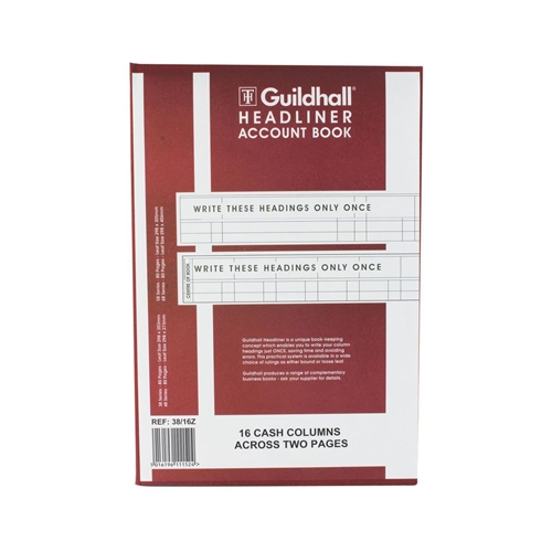 Guildhall Headliner Account Book Casebound 298x203mm 16 Cash Columns 80 Pages Red 38/16Z