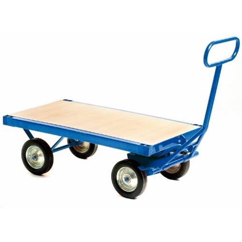 Heavy Duty Turntable Truck; Flat Deck Unit; Steel Centred Heavy Duty Wheels; 700kg; Blue/Veneer